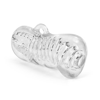 | "Color: Clear; Material: TPE; Special Features: Super stretchy, Waterproof; Length: 4 1/2""; Circumference: 6""; Weight: 0.2 lb; Fits up to: Any size; Product Type: Penis stroker; Manufacturer: Blush Novelties"
