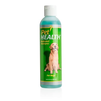 | Dogs are exposed to a variety of environmental irritants that can wreak havoc on their skin. PetHealth Medicated Shampoo helps to alleviate dry, flaking and itchy skin. Formulated with Panthenol to help the skin maintain its natural moisture balance and menthol to soothe and calm the skin and coat. PetHealth Medicated Shampoo is sulfate-free, phosphate-free, alcohol-free, preservative-free and paraben-free. The plant-based ingredients help to cleanse and moisturize without depleting the skins natural lipid barrier. The odor neutralizers eliminate pet odors and leave a minty-fresh scent that is long-lasting and not overpowering. PetHealth, Advanced Solutions for Optimal Health!