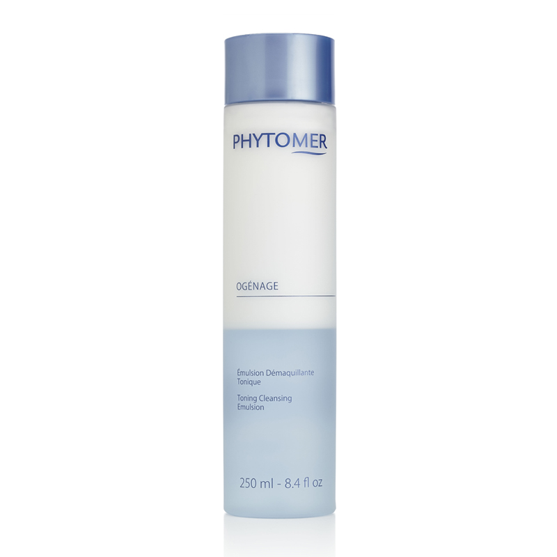| Phytomer Ogenage Toning Cleansing Emulsion is a dual action formula that gently removes makeup while toning the skin. The skin is left feeling revived and comfortably clean. Benefits: Soothes skin with sorenia ingredient Marine Spring Water protects skin against free radicals 2-in-1 solution that removes makeup and tones the skin simultaneously