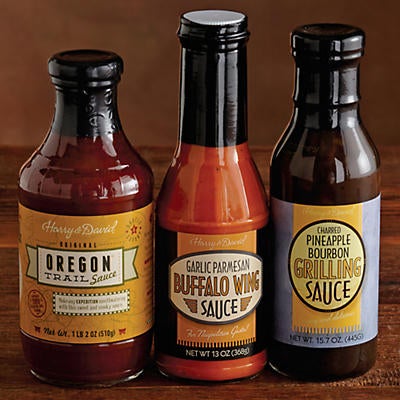 | Discover an assortment of BBQ, grilling, and wing sauces to complete your next barbeque. Garlic parmesan wing sauce, Texas-style BBQ sauce, and pomegranate mango grilling sauce are only a few of the delectable sauces to choose from. The perfect complement for any grilled entree, these sauces can be used for marinating, grilling, and dipping. Choose three of your favorites or try new flavors and to create the most delightful flavors.