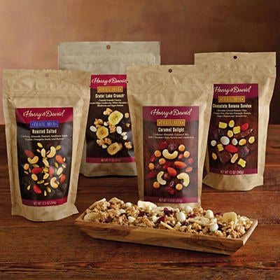 | Enjoy your choice of trail mix varieties from a selection of tasty flavor combinations. Select four of your favorites from these top-selling trail mixes originally only available in our retail stores. From sweet and salty to tropical and chocolaty, pick what you like best and have delectable snacks on hand for your next outdoor adventure or game-day gathering.
