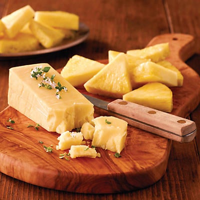 | Our Pineapple and SeaHive Cheese gift is definitely something to write home about. First off, the SeaHive cheese isn't your ordinary cheese. It's a cheddar cheese made by Beehive Cheese Co. that's been hand-rubbed with local wildflower honey and salt harvested from an ancient seabed. The result is a salty-sweet combination with floral honey notes and a sharp cheddar bite. Using high quality milk from dairy cows that graze just 10 miles from their creamery, Beehive Cheese Co. makes their specialty cheeses in small batches and hand rubs each to give it a unique taste. Super sweet pineapple pairs beautifully with this sharp cheese and is especially delicious grilled.