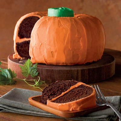 | Start a new fall family meal tradition with this delicious six-pound, pumpkin-shaped cake. This chocolate pumpkin cake is made with real butter; whole eggs; real pumpkin; sweet fall spices; and rich, creamy buttermilk. The incredible pumpkin is created in our own onsite bakery and hand-frosted with cream cheese frosting. Make a statement at your Thanksgiving gathering by serving this enchanting bakery creation that's sure to satisfy and impress.