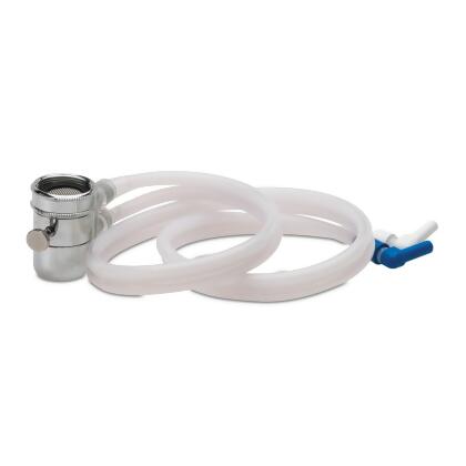 | PureH2O Water Filter Hose is a replacement component for the diverter hose of the PureH2O Countertop Water Filter. It includes the hose and chrome fitting. Remove the old hose and chrome fitting from the PureH20 Countertop Water Filter System and replace with new hose and chrome fitting. PureH2O, because it’s your water!