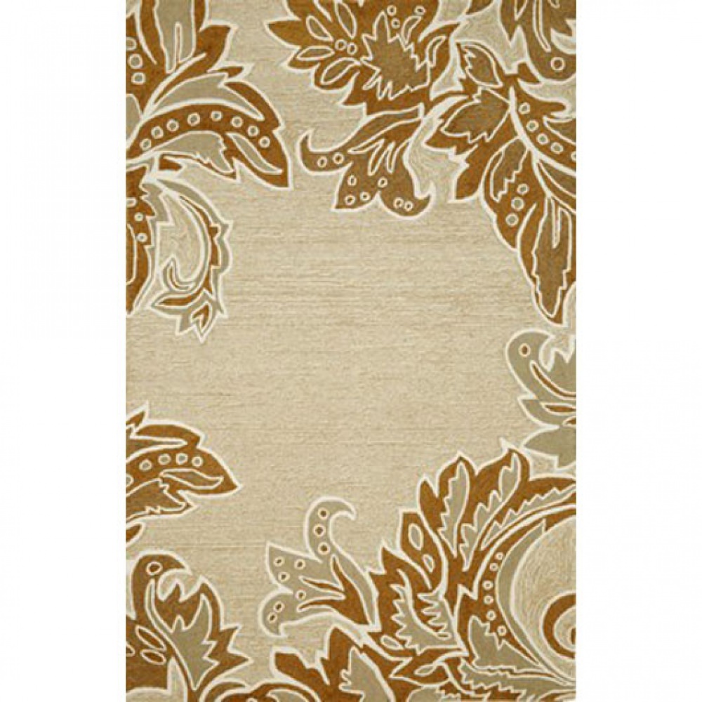 Ravella Ornametal Leaf Border Natural Outdoor Rug 42 x 66